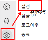 PC버전 왼쪽라인에 톱니바퀴를 선택하면 설정 버튼이 나옵니다. 선택해줍니다~