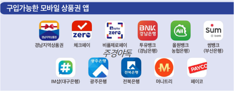 *구입가능한 모바일 상품권 앱 - 경남지역상품권, 체크페이, 비플제로페이, 투유뱅크(경남은행), |