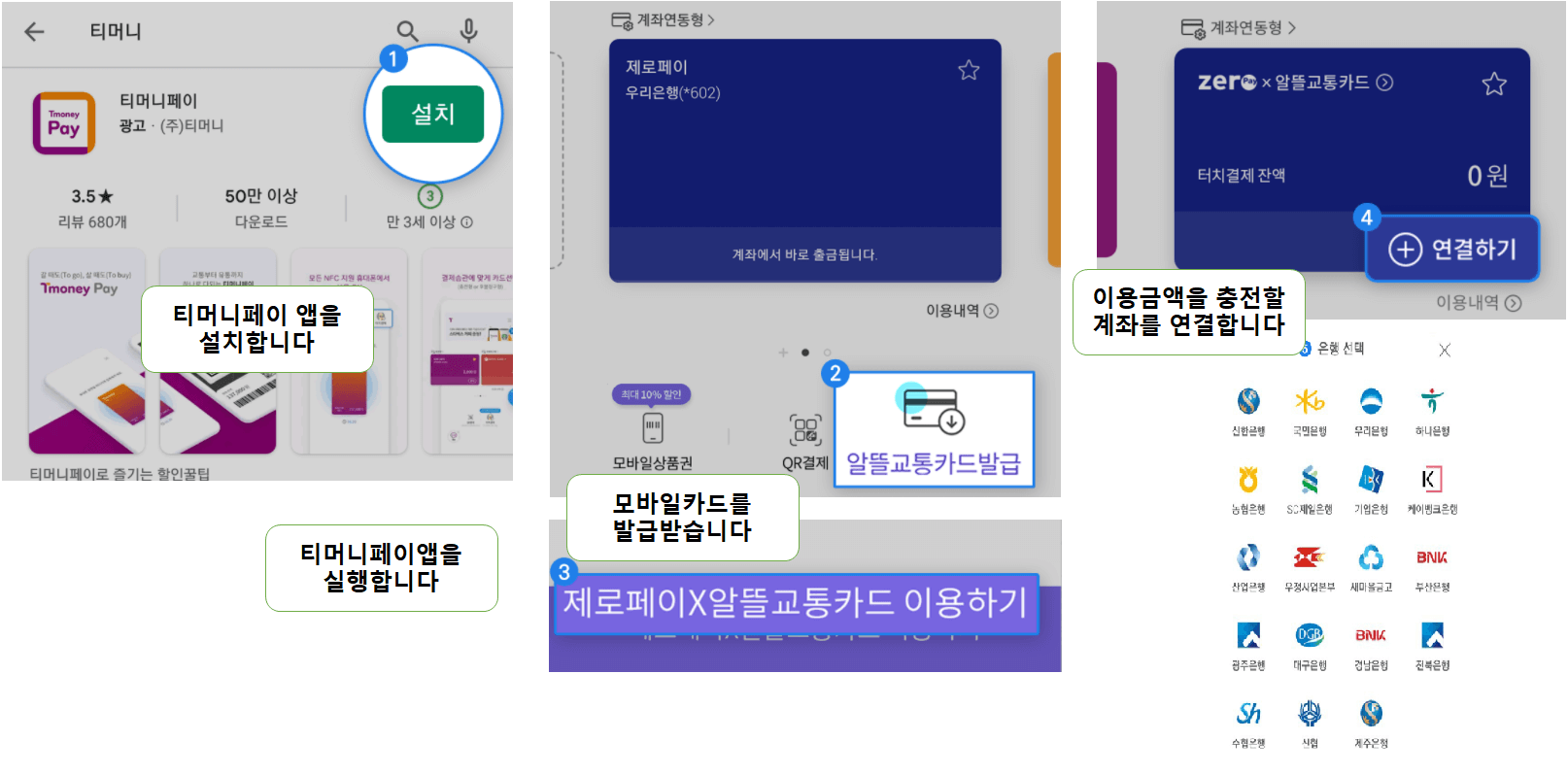 반드시 [티머니페이 앱]에서 다음의 과정을 거쳐 등록을 해주셔야 합니다.