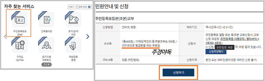 저는 초본 등본 둘다 인쇄를 해보았습니다.
