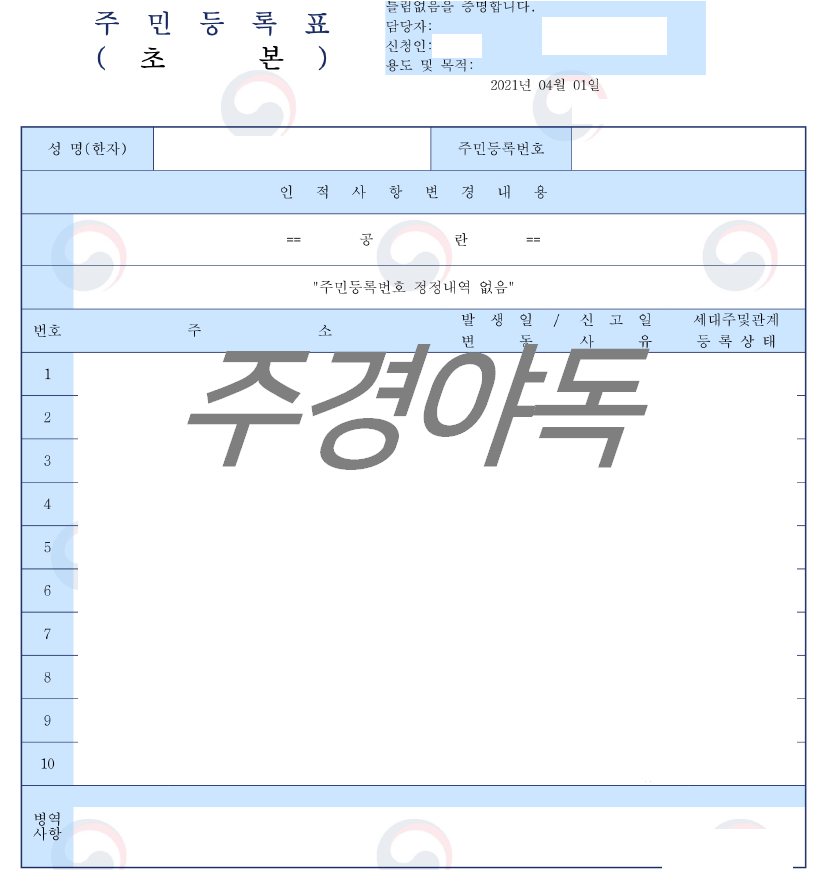 전입신고를 했다면, 내가 이사를 어디로 다녔는지 다 알 수 있답니다.