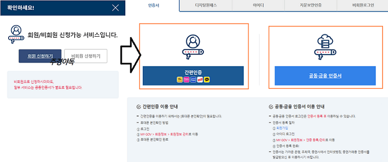 🔷준비물: 공인인증서(공동인증서) 또는 간편인증서