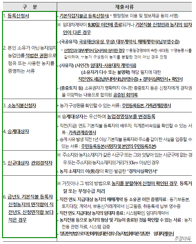 - 농가 내 지급대상자 각 영농종사 기간: 3년 이상
