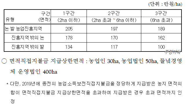 - 기본형 공익직불: 면적직불금, 소농직불금