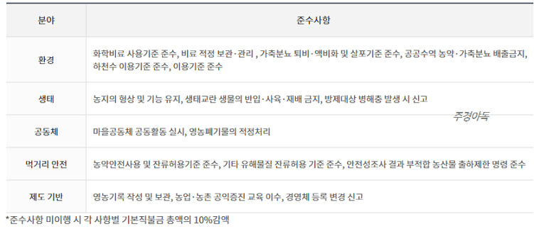 - 허위로 신청하여 직불금을 받으면 전액을 반환하고 5배의 제재부가금이 부과되는 것은 물론, 5~8년간 등록이 금지됩니다.