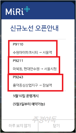 4. 5월 10일 도입되는 신규노선 - P9110번, P9221번, P9243번 버스
