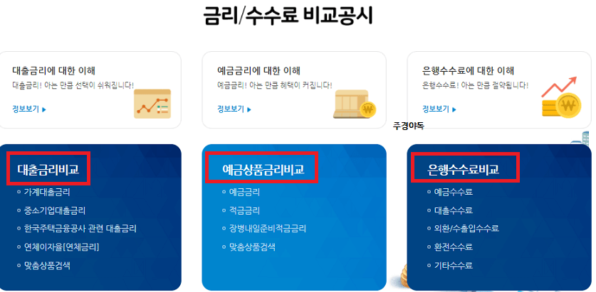 은행, 금융권 등의 금리와 수수료를 공시하고 있기 때문에 다음과 같이 아래의 금리와 수수료를 비교할 수 있습니다.