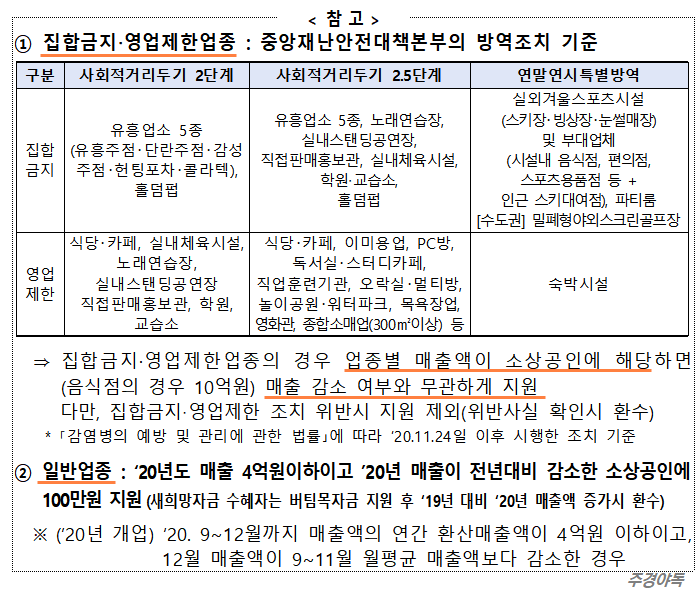 - 겨울스포츠시설, 숙박시설, 지자체가 추가하는 집합금지ㆍ영업제한 업종 등에 대한 지급은 1월 25일 이후 신청이 개시됩니다.
