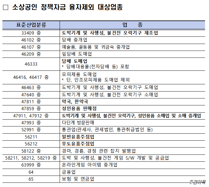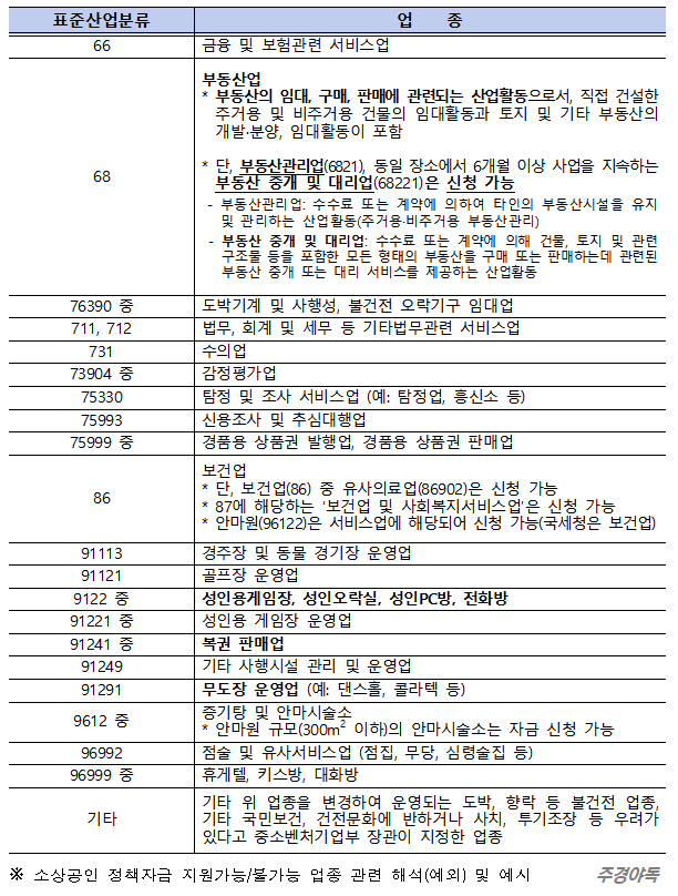 3) 소상공인 제외 대상 업종