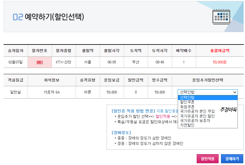 🚄코레일 승차권 기차표 예매 후 결제하기
