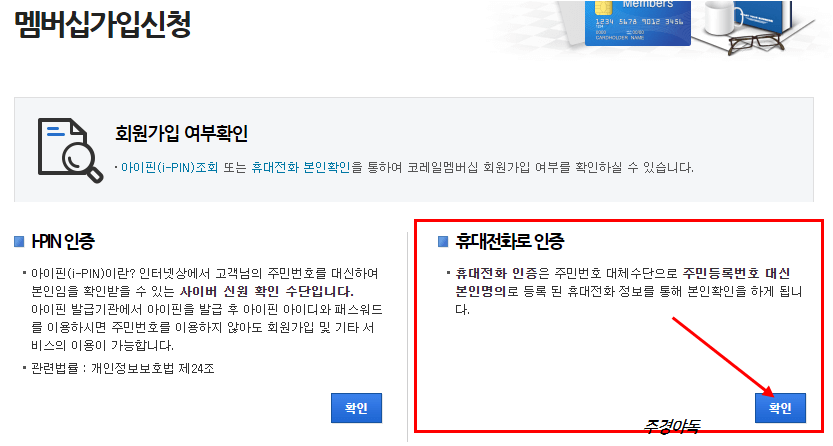 가입하기를 누르면 본인인증을 합니다.