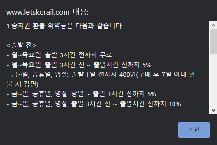 코레일 환불정책도 확인해보세요.