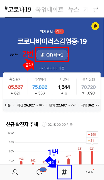 그리고 코로나19 화면으로 넘어갈거예요.