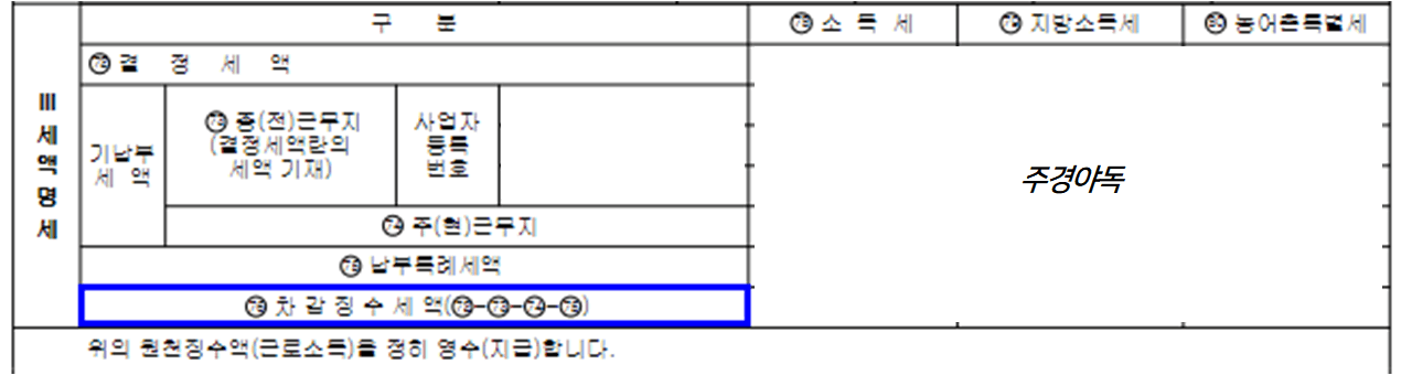 III. 세액명세 부분에 파란색 박스로 차감징수세액이 보이실 겁니다.