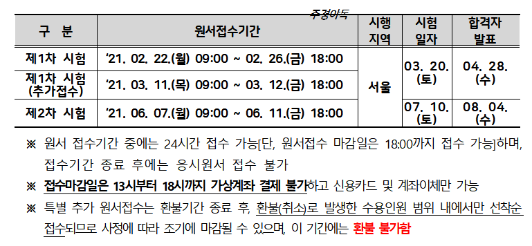 제1차시험 합격자 발표일은 4월 28일 수요일 9시,