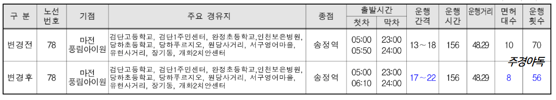 🔵인천 78번 버스 노선 변경