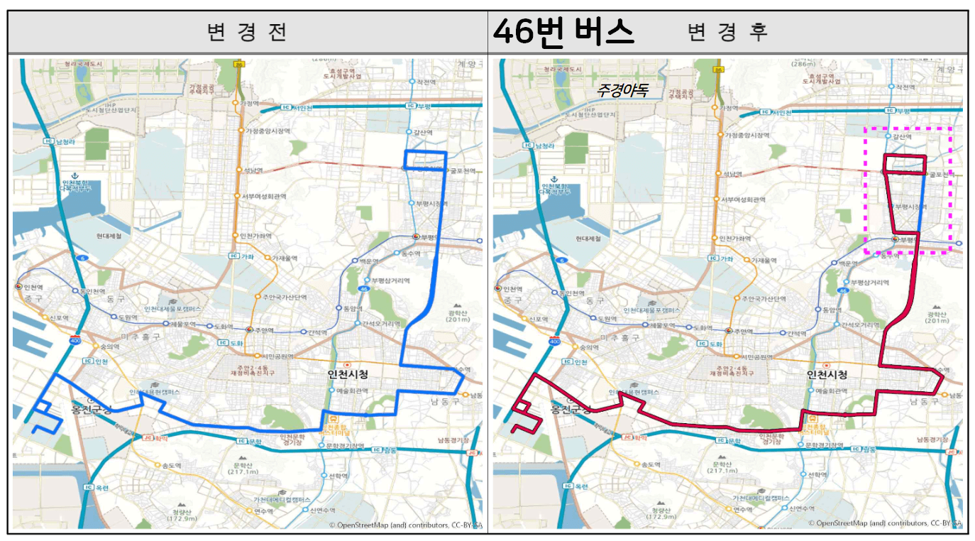 🔵인천 46번 버스 노선 변경