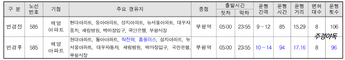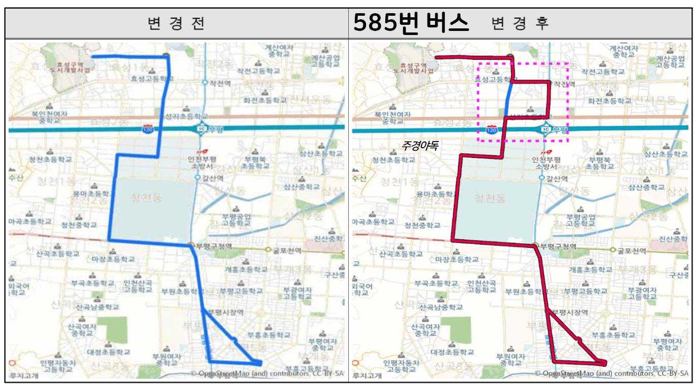 🔵인천 585번 버스 노선 변경