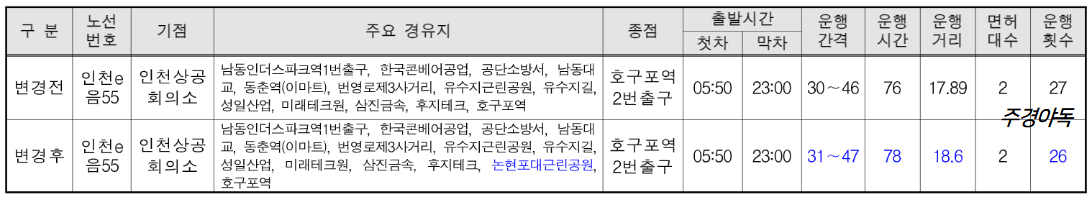 🔵인천e음 55번 버스 노선 변경