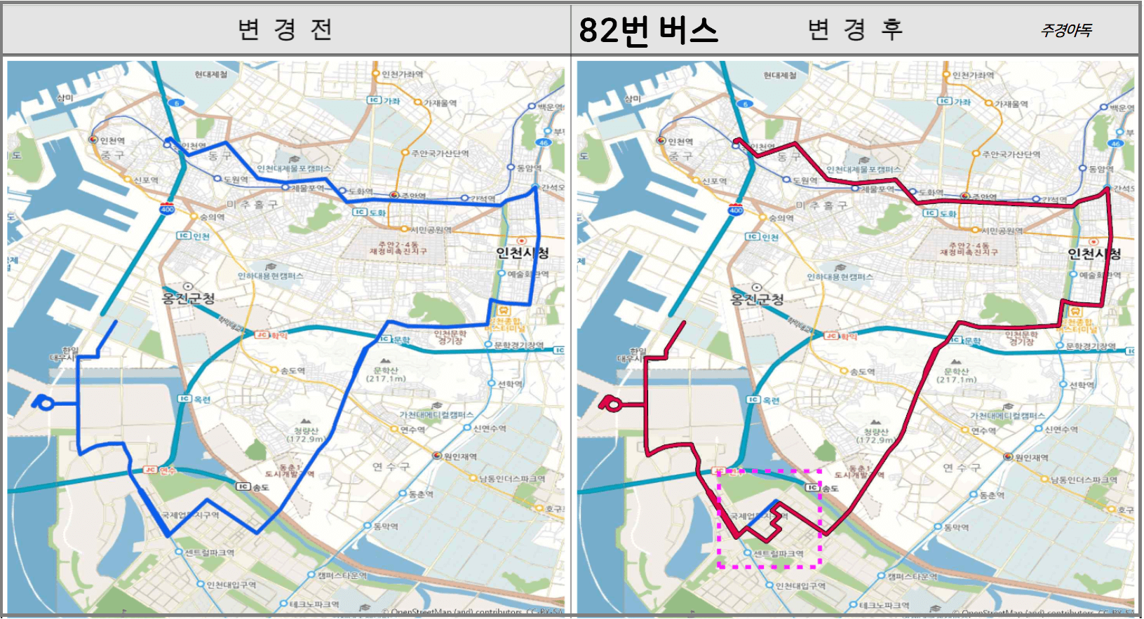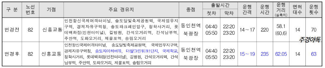🔵인천 82번 버스 노선 변경