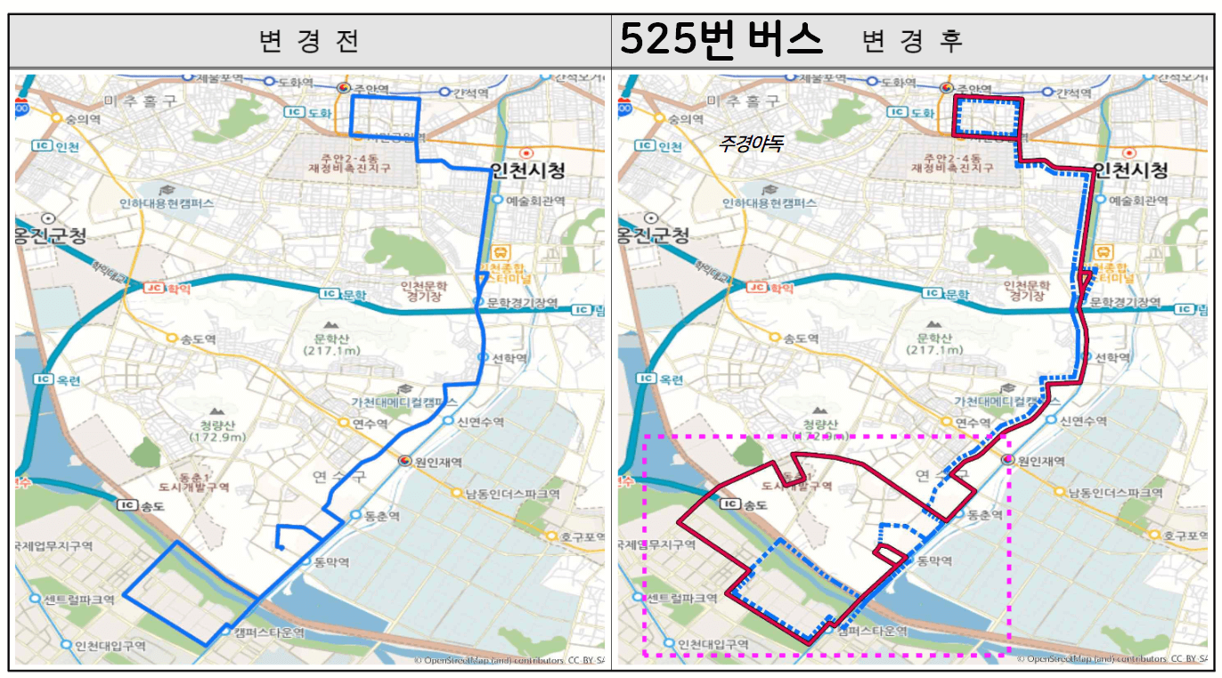 🔵인천 525번 버스 노선 변경
