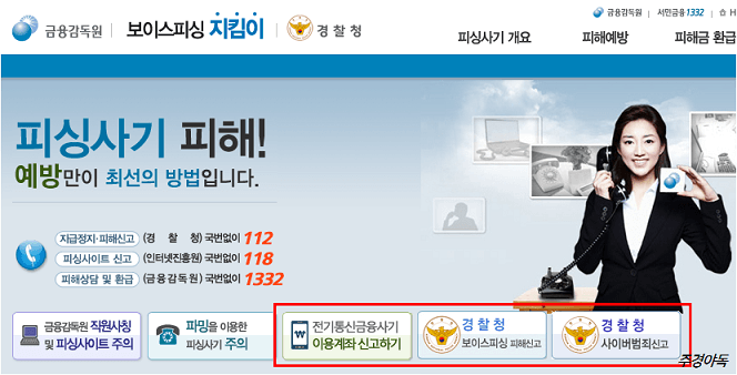 -> 금융감독원 보이스피싱 지킴이 사이트를 통해 빨간박스를 이용하여 전자신고를 진행하시기 바랍니다.
