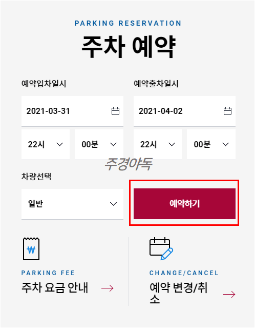 ✔예약 입차시간 이후 2시간 내 들어가지 않을 경우 예약이 자동 취소됩니다.