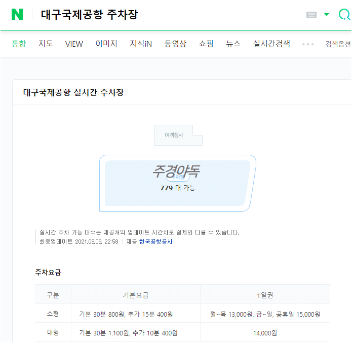 네이버에 대구국제공항 주차장을 검색하면 실시간으로 주차 가능 대수를 알 수 있습니다.