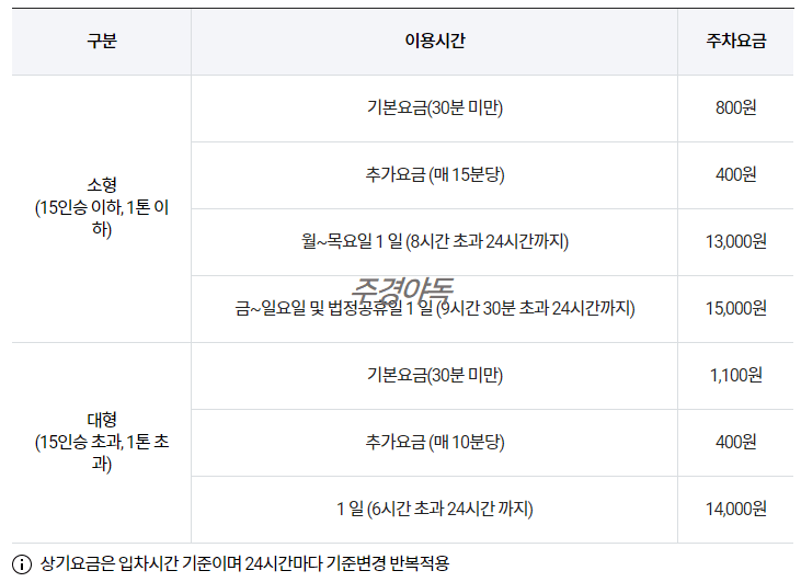 ✔주차요금은 실제 입출차 시간을 기준으로 계산됩니다.
